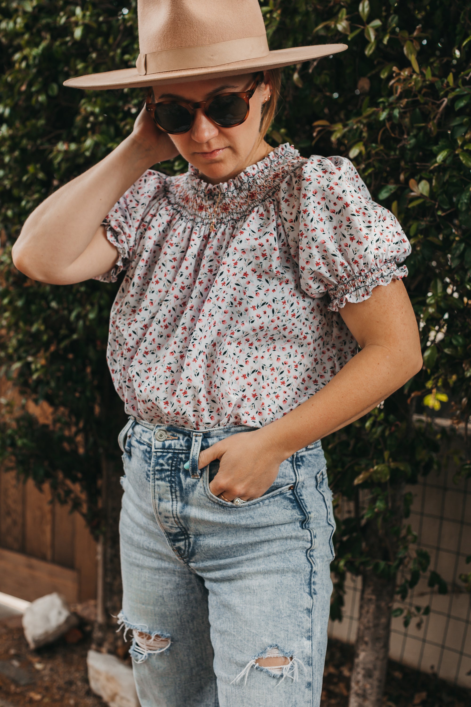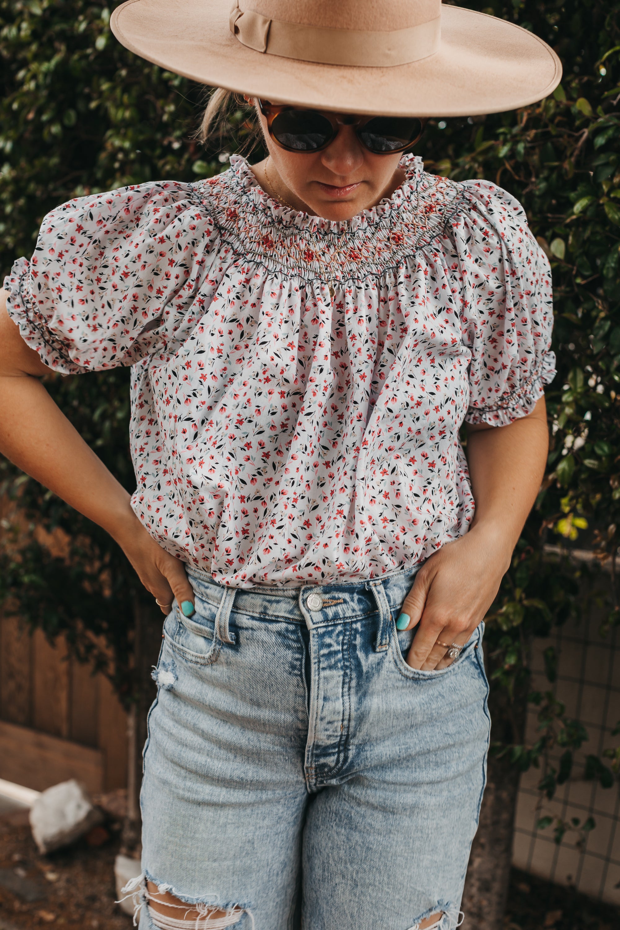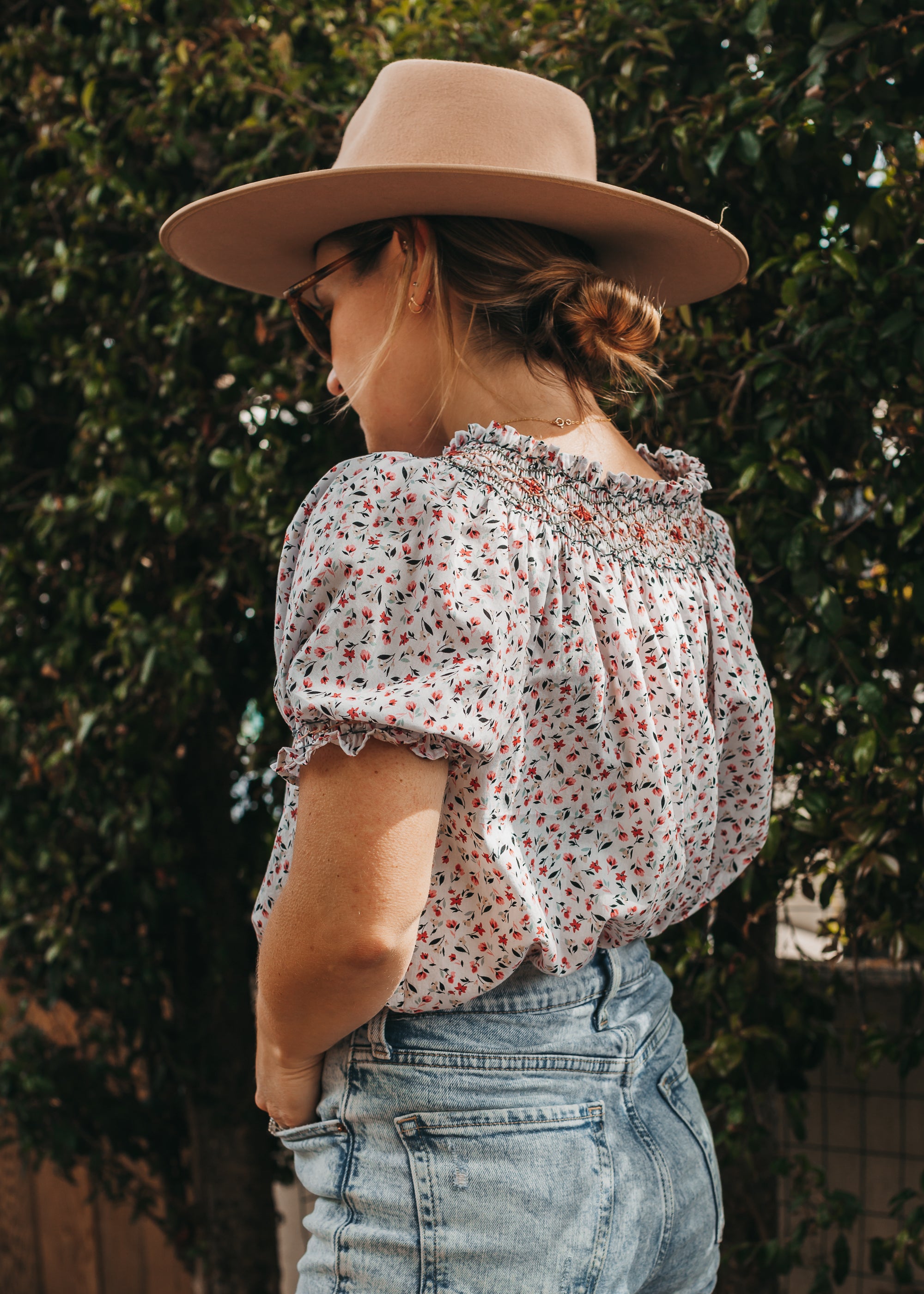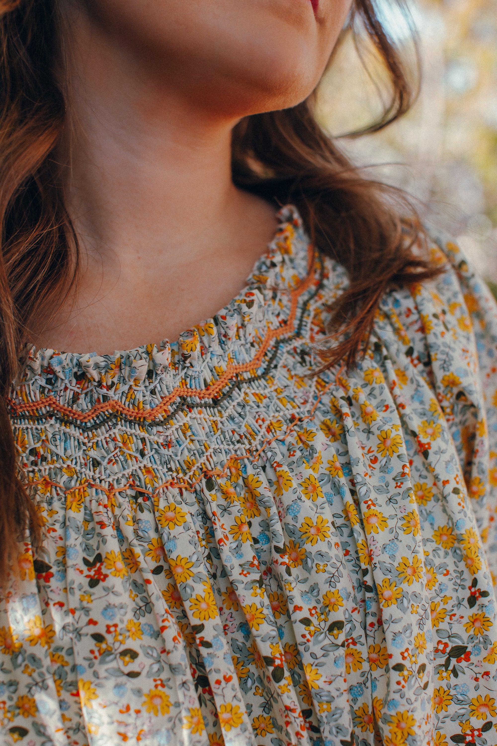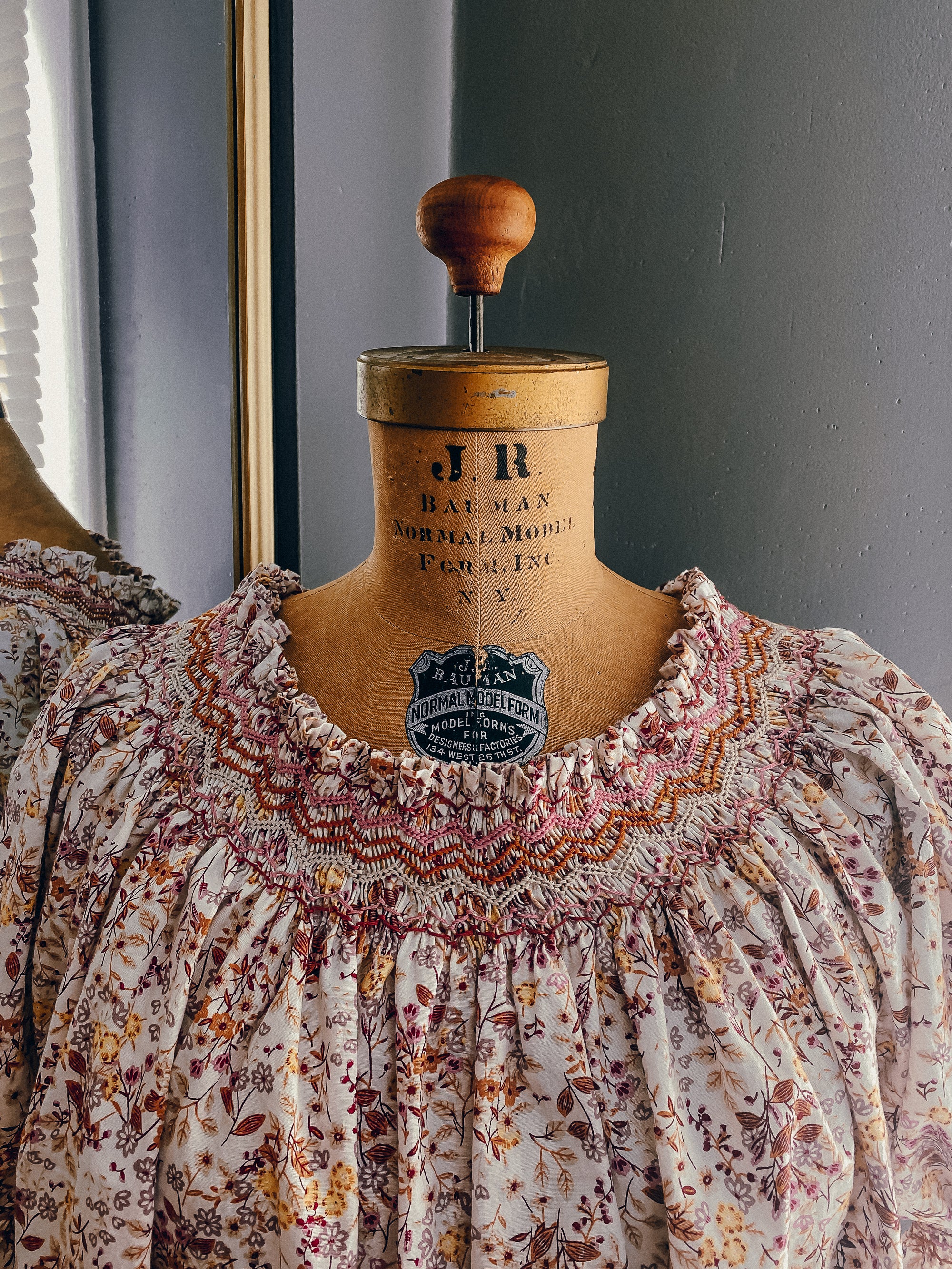 Made-to-order vintage-inspired smocked blouse with detailed hand embroidery. Inspired by 1970s smocked prairie blouses, this top features vintage pleating and smocked embroidery techniques, all done by hand in here in California.